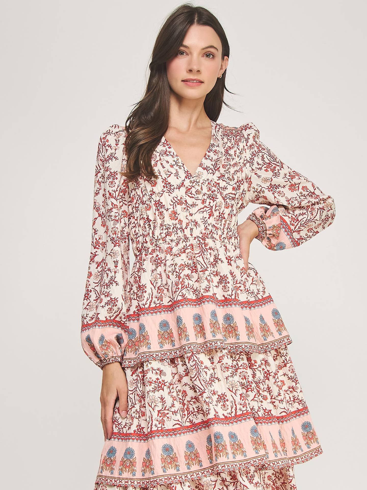 The pretty in pink tiered skirted dress is perfect with a pair of tall suede boots or heels. Wear now and into spring ππ