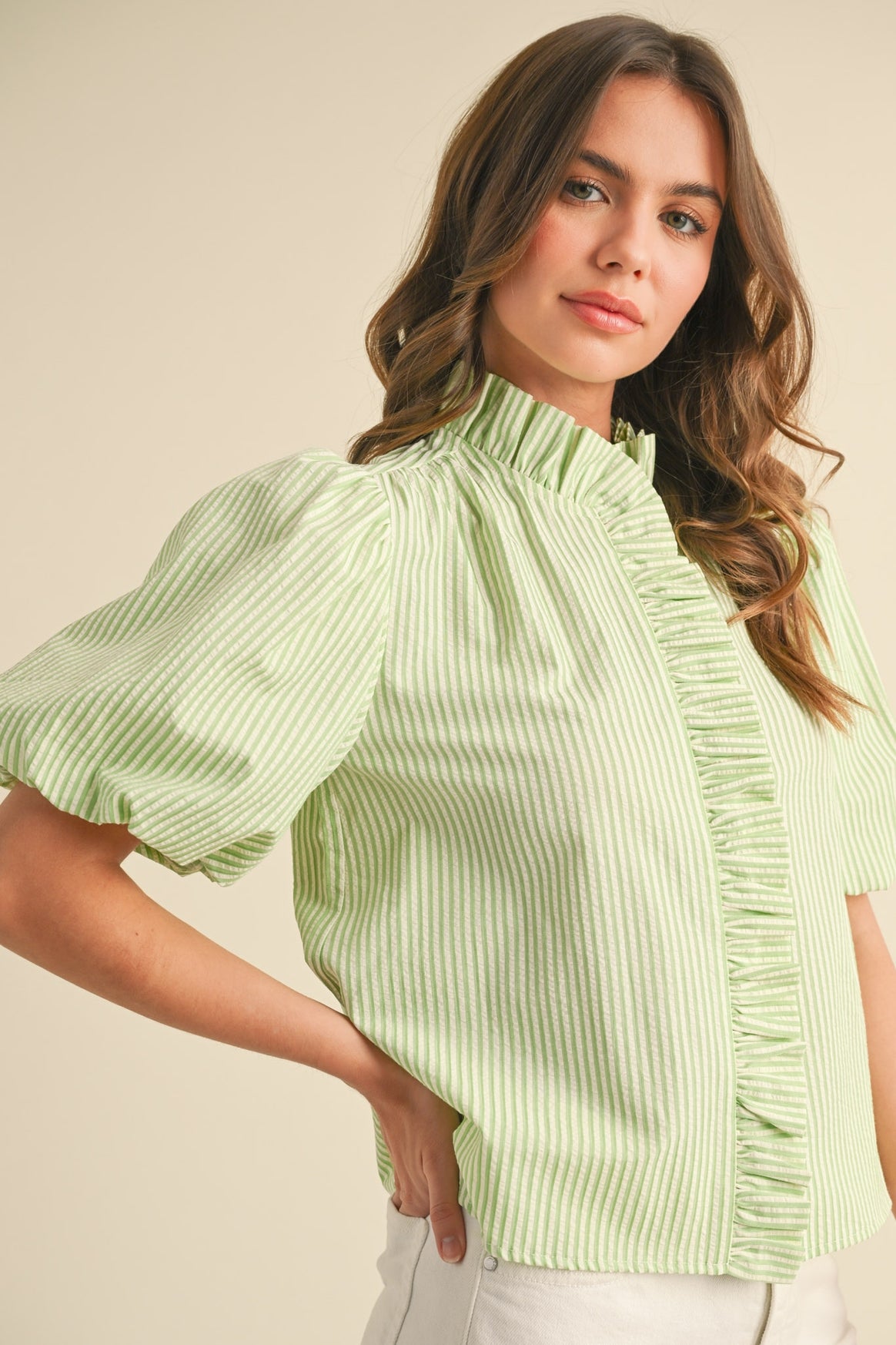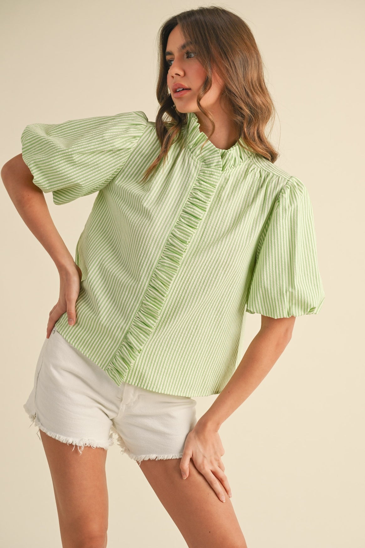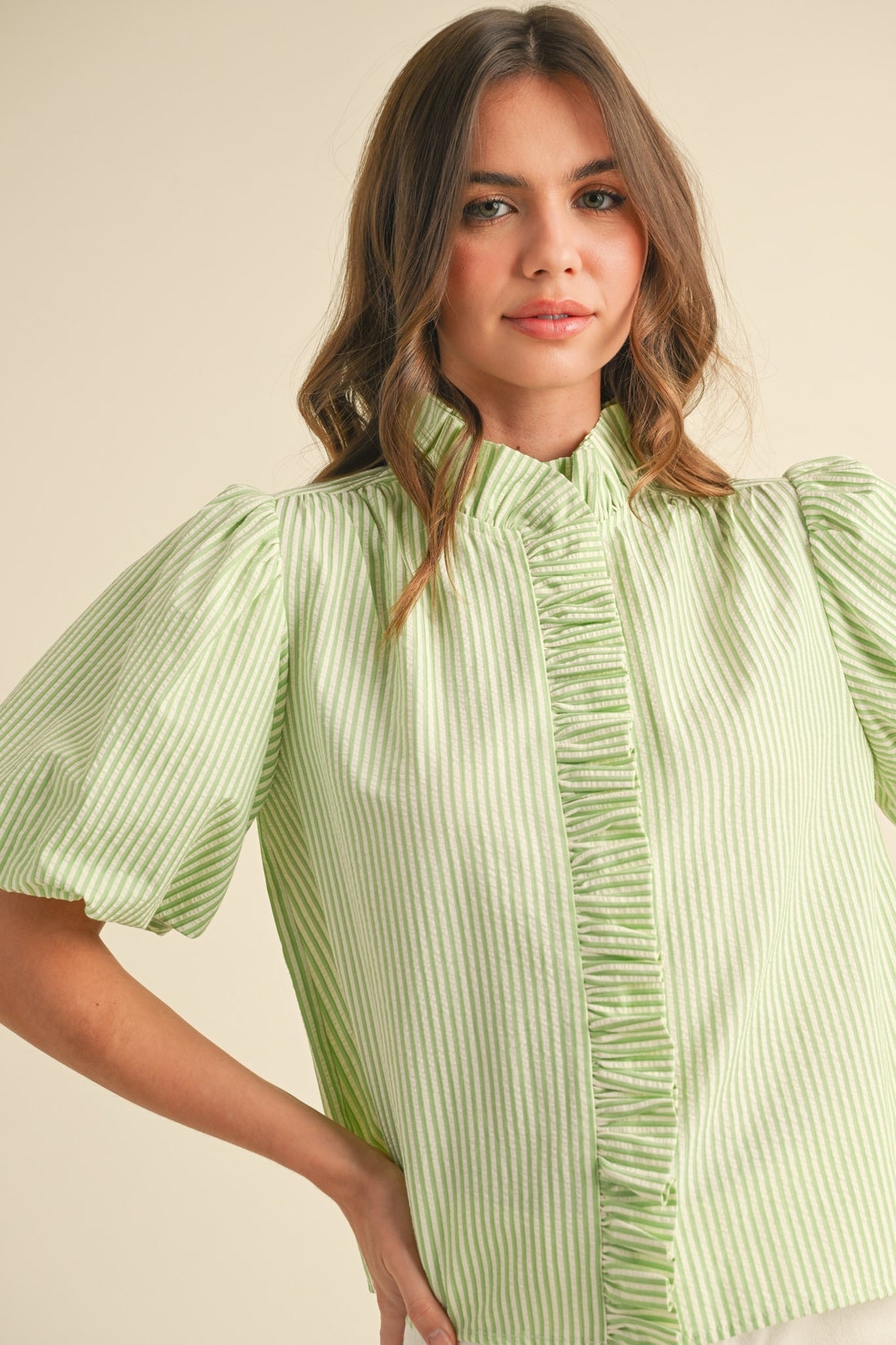 The citrus top is a lime green seersucker top with the cutest little ruffle πŸ‹β€πŸŸ©πŸ‹β€πŸŸ©